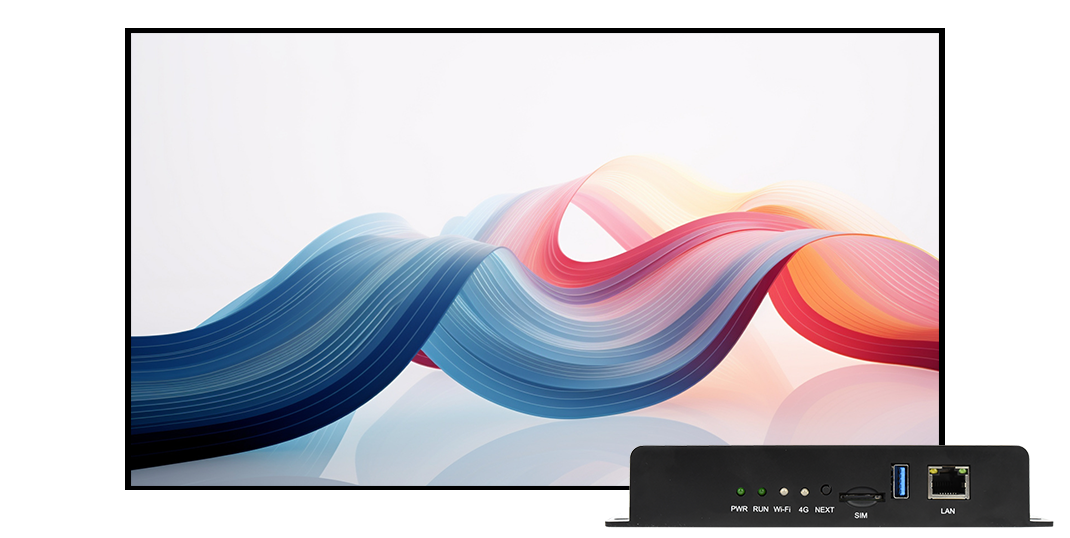 Video, pictures, text, animated words, clock, streaming, timing, counting, weather, tables, etc.